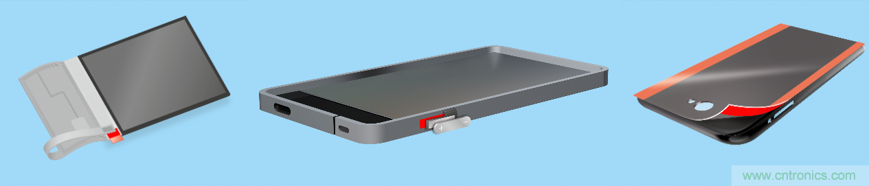 裝配過程中FPC的臨時(shí)應(yīng)用:包括彎折FPC運(yùn)輸過程中的臨時(shí)固定、側(cè)鍵固定、機(jī)殼的臨時(shí)保護(hù)。