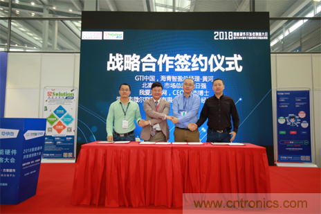 在開啟技術(shù)方案平臺+供應(yīng)鏈創(chuàng)新模式的同時,我愛方案網(wǎng)與美國GTI戰(zhàn)略合作簽約儀式也成功舉行,邀請到GTI中國海青智盈總經(jīng)理黃河先生,北高智市場總監(jiān)朱仝日強,我愛方案網(wǎng)CEO劉杰博士,深圳市微爾聯(lián)科技總經(jīng)理溫曉標(biāo)出席。這也是2017年末AI應(yīng)用聯(lián)盟活動的落地,我愛方案網(wǎng)作為GTI芯片方案服務(wù)商,攜手第一批代理商北高智、方案開發(fā)公司微爾聯(lián),聯(lián)合將GTI芯片逐步推向終端市場。