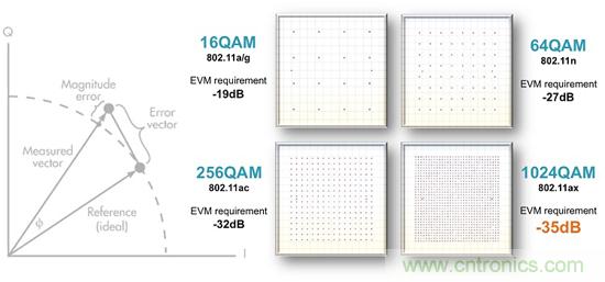 不同調變階數(shù)的EVM指標要求
