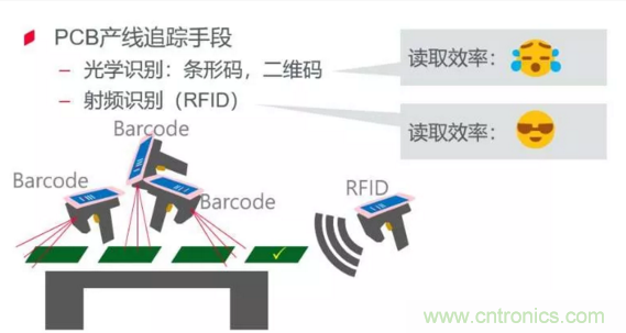 對于外觀相似的PCB板,精準分揀和每一道工序的數(shù)據(jù)記錄依賴于每塊板上的身份識別碼。傳統(tǒng)的光學(xué)身份識別需要掃碼槍對準板上二維碼位置和方向一一掃描,這對于柔性生產(chǎn)而言顯得效率低下。因為同一生產(chǎn)線的型號生產(chǎn)經(jīng)常切換,掃碼槍的對準位置也要跟著頻繁調(diào)試和測試。