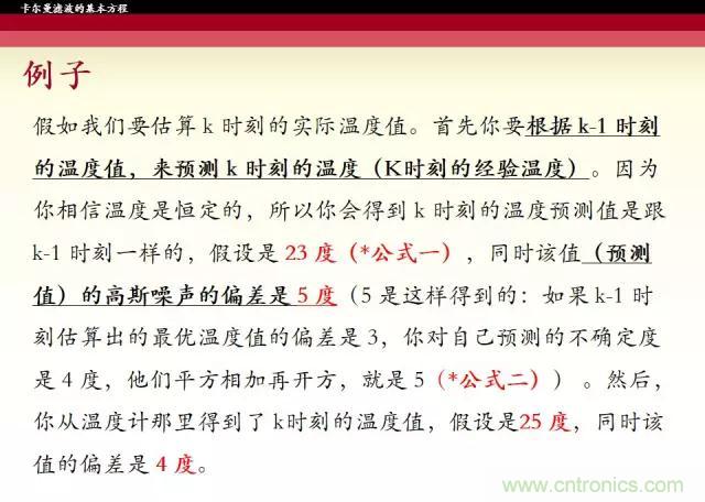 【導(dǎo)讀】卡爾曼濾波器是一種由卡爾曼(Kalman)提出的用于時變線性系統(tǒng)的遞歸濾波器。這個系統(tǒng)可用包含正交狀態(tài)變量的微分方程模型來描述,這種濾波器是將過去的測量估計誤差合并到新的測量誤差中來估計將來的誤差。接下來的五張圖帶你了解卡爾曼濾波器的基本思路和公式。