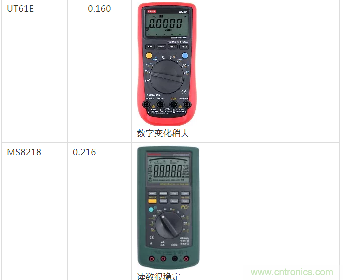 那么,使用數(shù)字萬用表是否可以測量隨機噪聲大小呢?在分析之前,可以先對比幾種不同的萬用表對隨機噪聲測量的結(jié)果。