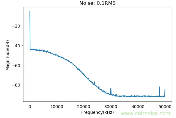 數(shù)字萬用表對于不同頻率正弦信號測量結(jié)果是不同的。由于隨機噪聲信號的頻譜擴展到了30Mhz左右,所以超過500kHz之后的頻率分量的結(jié)果都進行了衰減。