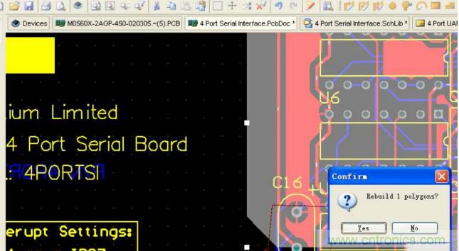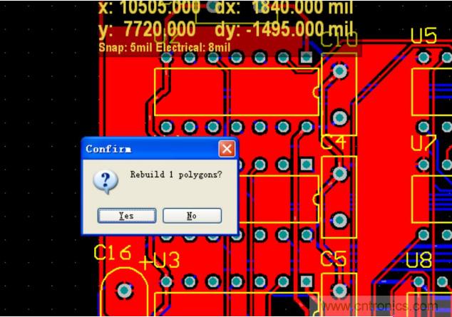 系統(tǒng)會提示你進行重新鋪銅,點擊 YES 。