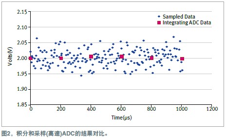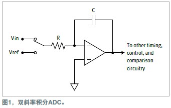 傳統(tǒng)上精密的SMU(信號(hào)源測(cè)量單元)均采用了積分式的模擬/數(shù)字變換器(ADC),這可以讓信號(hào)在一定時(shí)間間隔(稱(chēng)為積分時(shí)間)內(nèi)平均。圖1描述了一種經(jīng)過(guò)簡(jiǎn)化的雙斜率積分ADC,其基本工作原理是用未知的信號(hào)對(duì)電容充電,然后在基準(zhǔn)電壓下讓電容放電。充電和放電的時(shí)間的比例與未知信號(hào)與基準(zhǔn)信號(hào)間的比例成正比。雖然這一ADC技術(shù)可以提供很高的精度和對(duì)噪聲的出色耐受能力,但電容的充電-放電循環(huán)會(huì)造成測(cè)量的間隔過(guò)長(zhǎng)(至少50µs),這會(huì)讓測(cè)量速度大大降低。相比之下,高速ADC能夠以高達(dá)1MHz的猝發(fā)速率來(lái)對(duì)信號(hào)進(jìn)行采樣。與積分ADC不同的是,這些高速的ADC采用了類(lèi)似于示波器的采樣技術(shù),即可以獲取隨時(shí)間變化的信號(hào)的快照。它們可以提供高于示波器的分辨率(分別為18位和8位),從而可以以與之相當(dāng)?shù)膸拋?lái)完成更精確的瞬態(tài)特性測(cè)量。
