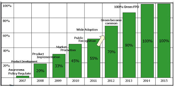 - 在2008年采用綠色環(huán)保技術或材料所生產的面板,預計在2012年將攀升至70%,并在2014年成為100%