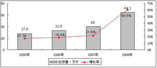 圖1 2005-2008年中國(guó)OLED產(chǎn)業(yè)出貨量及增長(zhǎng)率