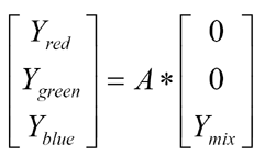 欲找出每個(gè)LED應(yīng)輸出的光通量,可利用逆矩陣,然后乘以想要的光通量輸出,如公式2所示。