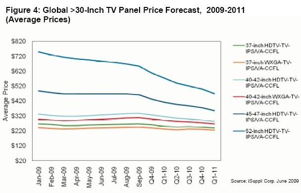 圖4所示為大于30英寸的LCD-TV面板的全球平均價(jià)格。