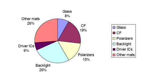 其中背光源的25%成本是基于CCFL的數(shù)據(jù),如果采用LED作為背光源,它所占的成本將大大超過這個比例,大約要占到50%的成本。采用場順序制以后,拿掉了濾色片就相當于發(fā)光效率提高了70%,這是非常可觀的。這意味著LED的數(shù)量可以減少70%,LED的成本就可以減少70%。而且LED數(shù)量減少70%以后,其發(fā)熱量可以減少70%,耗電也可以減少70%。