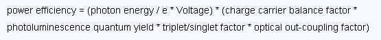 理論上電能轉換成光線的熱力極限,以綠光而言大約是2.5V。Novaled已經證實在carrier傳輸層內,必需整合穩(wěn)定擴散的氧化還原摻雜物(redox-dopants)。需注意是單純的摻雜(doping),只會減少組件的量子效率,因此正確的device設計也非常重要。
