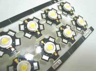 過去由于LED輸出功率較小,因此使用傳統(tǒng)FR4等玻璃環(huán)氧樹脂封裝基板,并不會造成太大的散熱問題,但應(yīng)用于照明用的高功率LED,其發(fā)光效率約為20%~30%左右,雖芯片面積相當(dāng)小,整體消費(fèi)電力也不高,不過單位面積的發(fā)熱量卻很大?! ?br />
