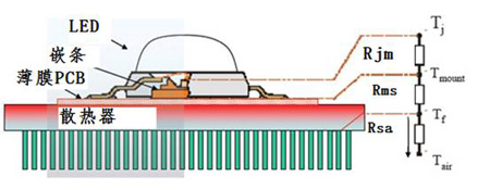 [page]圖3.LED到散熱器各個(gè)熱阻的示意圖