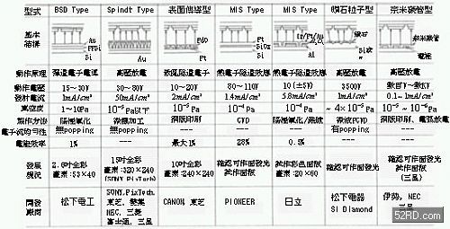 然電漿顯示器(plasma)與LCD(LiquidCrystalDisplay)等平面顯示器(FlatPanelDisplay)已經(jīng)進入商品化階段,不過耗電量、輝度、對比以及動畫反應(yīng)時間等問題,若與傳統(tǒng)CRT比較時仍有改善的空間,另一方面有機EL等諸多新世代平面顯示器(表1)卻面臨制程、成本、使用壽命、大型化等瓶頸,因此至今仍無法實用化。有鑑于此松下電工與東京農(nóng)工大學利用BSD(BallisticelectronSurfaceemittingDevice)概念制作場發(fā)射顯示器(FED:FieldEmittingDisplay)。