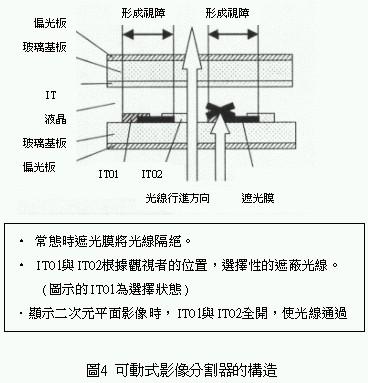 只需關(guān)閉電子驅(qū)動的液晶顯示器的shutter,便可獲得與一般平面顯示器同等質(zhì)的二次元影像。