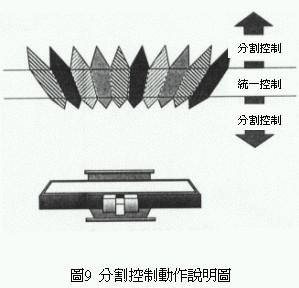 傳統(tǒng)的不需專用眼鏡的三維立體影像顯示器,同樣水平方向時小畫面的前后方向的立體可視范圍比大畫面的立體可視范圍大(圖7),這是因為小畫面的視角比較小,液晶顯示器與影像分割器較不容易產(chǎn)生所謂的moire干涉縞。利用這種物理現(xiàn)象將液晶顯示器與影像分割器,藉由電子方式分割成16等份各別掌控專屬區(qū)域(圖8)