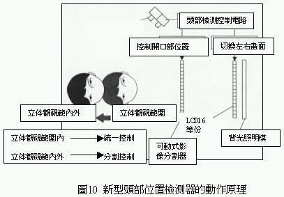為了改善上述缺失因此開發(fā)出頭部檢測系統(tǒng)(headtrackingsystem),利用這種檢測系統(tǒng)可隨時偵測觀視者頭部位置,一旦產(chǎn)生逆視領(lǐng)域時顯示器會立即切換左右兩眼所讀取的影像,如此一來不但可以防止逆視問題的發(fā)生,還可以擴(kuò)大三次元立體影像的可觀視范圍.