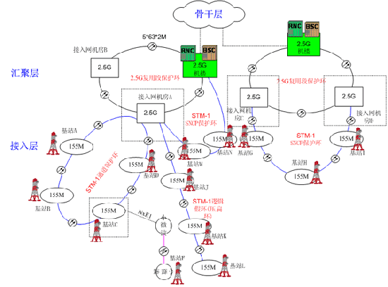 圖1中國移動(dòng)2G基站回傳所使用的SDH/MSTP技術(shù)方案