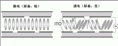所以IPS的驅(qū)動(dòng)電壓會(huì)較高,一般需要15伏。由於電極在同一平面會(huì)使開(kāi)口率降低,減少透光率,所以IPS應(yīng)用在LCDTV上會(huì)需要更多的背光燈如圖,細(xì)條型的正負(fù)電極間隔排列在基板上,有些類似早期的VA模式液晶。把電壓加到電極上,原來(lái)平行於電極的液晶分子會(huì)旋轉(zhuǎn)到與電極垂直的方向,但液晶分子長(zhǎng)軸仍然平行於基板,控制該電壓的大小就把液晶分子旋轉(zhuǎn)到需要的角度,配合偏振片就可以調(diào)制極化光。