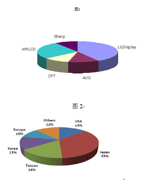 數(shù)據(jù)顯示,國(guó)內(nèi)所有的LED TV面板來(lái)源全部進(jìn)口,其中有部分open cell的模式,但是背光模組仍是采用指定購(gòu)買的方式。從中國(guó)大陸地區(qū)LED面板供應(yīng)來(lái)源來(lái)看,以2010年第一季度為例,主要供貨來(lái)源為L(zhǎng)G Display, AMLCD, AUO, CPT(如圖1),其中CPT供貨多數(shù)為小尺寸。而從全球LED面板產(chǎn)值來(lái)看,日本廠商目前為市場(chǎng)領(lǐng)導(dǎo)者,臺(tái)灣和韓國(guó)廠商積極擴(kuò)大產(chǎn)值(如圖2)。由此來(lái)看,LED TV面板產(chǎn)業(yè)市場(chǎng)集中度非常高,未來(lái)的LED TV市場(chǎng)的競(jìng)爭(zhēng)格局主要受限于廠商的資源分配情況。