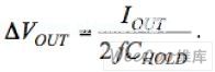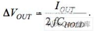 在第二階段,C1+連接到輸出,放電電流(電流大小與前面的充電電流相同)通過C1流到負(fù)載。在這個(gè)階段,輸出電容電流的變化大約為2IOUT。盡管這個(gè)電流變化應(yīng)該能產(chǎn)生一個(gè)輸出電壓變化為2IOUTESRC_HOLD,使用低ESR的陶瓷電容使得這種變化可以忽略不計(jì)。此時(shí),CHOLD按下面的電量線性電位充電︰