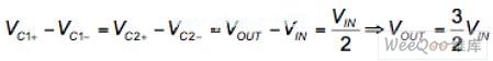 [page]輸出電容CHOLD提供輸出負(fù)載電流。隨著這個(gè)電容的放電,輸出電壓降低到期望的輸出電壓以下,第二個(gè)階段是被激活來將輸出電壓增高到這個(gè)值以上。在第二階段,C1和C2并聯(lián),連接在VIN和VOUT之間。開關(guān)S4到S7關(guān)閉,而S1到S3和S8打開。因?yàn)殡娙輧啥说碾妷航挡⒉荒芡蛔?,輸出電壓跳變到輸入電壓值?.5倍︰