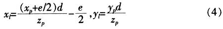 將式(2)帶入式(1)得點P在投影平面的坐標(xr,yr):