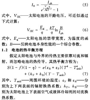 由上述模型可以看出,太陽(yáng)電他的輸出特性和工作溫度不可能通過(guò)分析解來(lái)得到,必須通過(guò)迭代和數(shù)值模擬的方法得到。計(jì)算方法是通過(guò)熱平衡方程得到太陽(yáng)電他的工作溫度,然后通過(guò)太陽(yáng)電他的電特性方程計(jì)算電他的伏安特性,得到太陽(yáng)電他的峰值輸出功率、轉(zhuǎn)換效率等參數(shù),然后再把新的轉(zhuǎn)換效率代入熱平衡方程進(jìn)行新一輪計(jì)算,直到滿足計(jì)算精度為止。