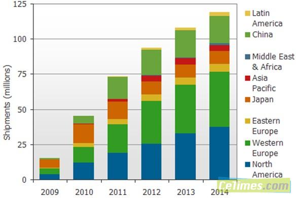 經(jīng)過針對許多一線品牌2010年新產(chǎn)品線的調(diào)查分析,報(bào)告中指出,全球地區(qū)包含日本、北美、歐洲、中國和印度等地,已經(jīng)有55%的電視機(jī)型擁有DLNA(數(shù)字生活網(wǎng)絡(luò)聯(lián)盟,Digital Living Network Alliance)的認(rèn)證。整體而言, 聯(lián)網(wǎng)電視在2010年中預(yù)計(jì)將有4千5百萬臺(tái)的出貨量,約占有全年度所有電視出貨量的19%。DisplaySearch更進(jìn)一步預(yù)測,預(yù)計(jì)到了2014年時(shí)聯(lián)網(wǎng)電視將會(huì)有約1億1千9百萬臺(tái)的出貨量,占有總出貨量的42%之多。