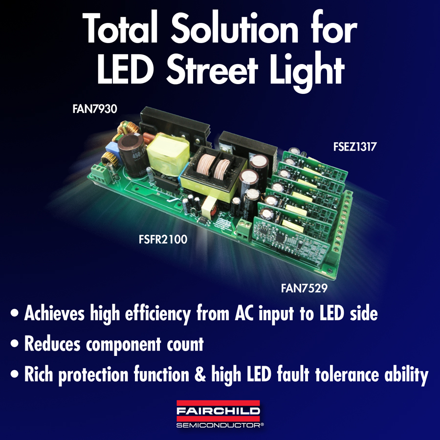 - 飛兆半導(dǎo)體公司開發(fā)出一款完整的LED路燈照明解決方案