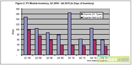 iSuppli公司的數(shù)據(jù)顯示,在這些因素的影響下,光伏渠道庫(kù)存在2010年第一季度末上升,這種情形將在第三季度再度浮現(xiàn)。同時(shí),庫(kù)存趨于穩(wěn)定。這是夏季德國(guó)削減電價(jià)補(bǔ)貼以及安裝商降低價(jià)格的結(jié)果。安裝商在此期間為了維持市場(chǎng)份額,紛紛降低價(jià)格。
