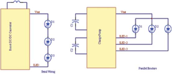 關(guān)鍵點在于,在色彩應(yīng)用中獨立及動態(tài)地調(diào)節(jié)每個LED亮度的能力。雖然有可能采用升壓結(jié)構(gòu)、使用開關(guān)在每個LED間進行連接以控制它們,但串行排列并非首選的解決方案,而并行結(jié)構(gòu)最易于實現(xiàn)。