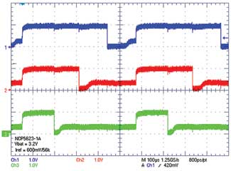 圖5中的波形源自工業(yè)應(yīng)用,它展示了嵌入在所選器件中的三個PWM的特性。三個LED采用一個共同低頻時鐘控制,并帶有一個占空比設(shè)置來適應(yīng)給定應(yīng)用。這很明顯能夠獨立地減弱或增強每個PWM,范圍在0~100%的占空比之間,而ILED峰值電流為恒定。