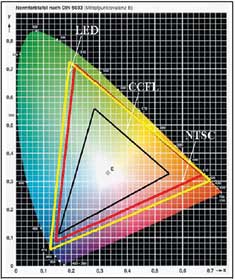 圖6LED和CCFL的色域與NTSC標(biāo)準(zhǔn)的比較