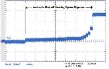 圖7典型的NCP5623自動向上漸進調(diào)光過程(每級8ms)