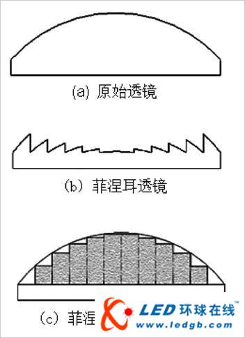 LED體積很小,但市場上銷售的LED用杯狀透鏡大都厚度在10mm以上,這成為LED在某些場合應(yīng)用的致命問題,雖然可以用菲涅爾透鏡來減薄透鏡的厚度和減少光吸收,但如何進行精確的光學(xué)設(shè)計卻很少見到文獻報道。