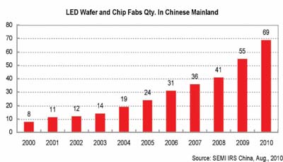 在中國LED產(chǎn)業(yè)結(jié)構(gòu)不斷調(diào)整和優(yōu)化的過程中,未來幾年,中國外延、芯片企業(yè)規(guī)模也將進一步擴大。到2010年8月,中國已有LED外延和芯片企業(yè)69家(包括20余家在建或計劃中)。在已經(jīng)生產(chǎn)或在建的企業(yè)中,有48家涉及LED核心環(huán)節(jié)外延及芯片制造,有10余家專注于LED芯片制造。