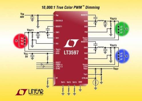 凌力爾特公司 (Linear Technology Corporation) 推出 60V、1MHz、降壓型 DC/DC 轉(zhuǎn)換器 LT3597,該器件設(shè)計成作為 3 通道、恒定電流 LED 驅(qū)動器工作。LT3597 的每個通道都含有一個吸收恒定電流的 LED 驅(qū)動器和專用的自適應(yīng)輸出降壓型轉(zhuǎn)換器。這種設(shè)計為 RGB 顯示器等應(yīng)用提供了最高效率,在這類應(yīng)用中,每個 LED 串需要不同的輸出電壓。在 48V 輸入時,LT3597 可驅(qū)動多達(dá) 3 個 LED 串 (每串由多達(dá) 10 個 100mA 的 LED 串聯(lián)組成),提供超過 90% 的效率。LT3597 的多通道能力使其可理想地應(yīng)用于大型 LED 廣告牌背光照明,也非常適用于工業(yè)、汽車和醫(yī)療顯示器。類似地,其 6V 至 60V 輸入電壓范圍使該器件也非常適合工業(yè)、汽車和醫(yī)療應(yīng)用。每個 LED 串都能獨立設(shè)定,以提供高達(dá) 100mA 的 LED 電流,在 LED 串之間具有 ±2% 的電流匹配準(zhǔn)確度。此外,每個通道可運用 True Color PWM 調(diào)光方式獨立調(diào)光,提供高達(dá) 10,000:1 的調(diào)光比。以 200kHz 至 1MHz 的可編程固定頻率工作以及電流模式架構(gòu)確保在非常寬的電源和輸出電壓范圍內(nèi)穩(wěn)定工作,從而最大限度地減小了外部組件的尺寸。此外,開關(guān)頻率可同步至一個外部時鐘。LT3597 采用耐熱增強(qiáng)型 5mm x 8mm QFN 封裝,可為 LED 照明應(yīng)用組成占板面積非常緊湊的解決方案。