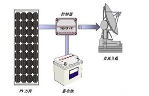 圖2是一個典型的供應直流負載的光伏系統(tǒng)示意圖。其中包含了光伏系統(tǒng)中的幾個主要部件:光伏組件方陣:由太陽電池組件(也稱光伏電池組件)按照系統(tǒng)需求串、并聯(lián)而成,在太陽光照射下將太陽能轉(zhuǎn)換成電能輸出,它是太陽能光伏系統(tǒng)的核心部件。
