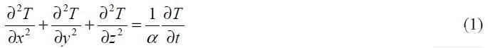 其中:T 為溫度;t 為時間;x, y, z 空間三維坐標(biāo)系;α 為熱膨脹系數(shù),α 滿足方程:
