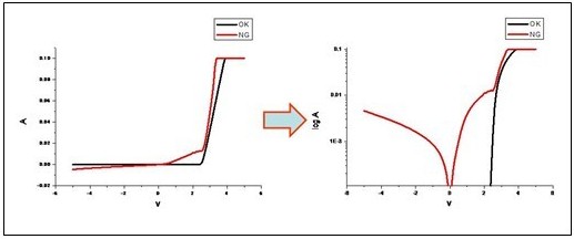 2. 變色:這類失效是指LED不點亮的狀況下,外觀顏色或膠材透明度與新品不同,用肉眼即可看出,通常在產(chǎn)品使用一段時間或在做完可靠度試驗后發(fā)生。一般說來,變色區(qū)域大致可區(qū)分為發(fā)生在導(dǎo)線架或封裝膠材兩類,若發(fā)生在導(dǎo)線架,通常是因為表面與環(huán)境中的化學(xué)物質(zhì)發(fā)生反應(yīng),如氧化或硫化,要分辨屬于哪種需仰賴成份分析,可使用的儀器包含有EDS(Energy Dispersive X-ray Spectroscope)、XPS(X-ray Photoelectron Spectrometer)、AES(Augur Electron Spectroscope)等等。若是封裝用的膠材發(fā)生變色,則屬于高分子材料的劣化現(xiàn)象,如環(huán)氧樹脂易受高溫或是紫外光影響而變黃,因此白光LED多改采矽膠取代之。分析此類失效應(yīng)特別留意,因膠材本身有一定的透明度,有時變色的導(dǎo)線架因被膠材蓋住而誤判為膠材變色,引導(dǎo)至錯誤的改善方向。