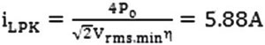 選擇電感L=220H, 選取PQ3230為磁芯,各項參數(shù)查表知道,磁芯有效面積Ae=161mm2,AL=5140nH/N2,Le=7.46cm,磁芯的最高工作磁密Bs=0.32T,電感的峰值感應電流: