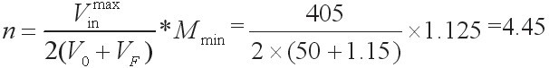 =405V,經(jīng)查得變壓器輸出端整流二極管FFPF12UP2ODN壓降VF=1.15V,要求輸出電壓V0=50V則變壓器匝數(shù)比n為: