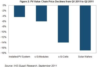 晶圓領(lǐng)域直到最近還是PV價(jià)值鏈中利潤(rùn)比較豐厚的環(huán)節(jié)。但是,產(chǎn)能大量增加,包括垂直整合型企業(yè)增加的產(chǎn)能,導(dǎo)致上半年晶圓面臨降價(jià)壓力。這進(jìn)而降低了生產(chǎn)電池的成本,導(dǎo)致模組的價(jià)格下降。