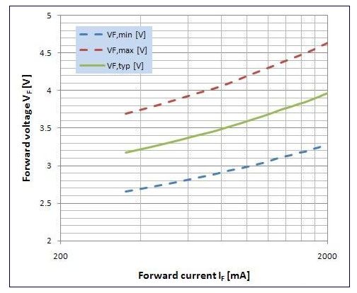 移動電話中閃光燈 LED 的高正向電壓和電流以及給定的電池電壓,讓升壓轉(zhuǎn)換器成為最佳的解決方案。驅(qū)動大電流時,基于電感的升壓轉(zhuǎn)換器呈現(xiàn)出令人滿意的效率。LED 必須為電流驅(qū)動,因?yàn)檎螂妷翰粌H僅隨溫度而變化,而且也有其自身的差異。正向電壓的這種變化源自于其生產(chǎn)過程,其變化范圍為 ±20%,請參見圖 1。