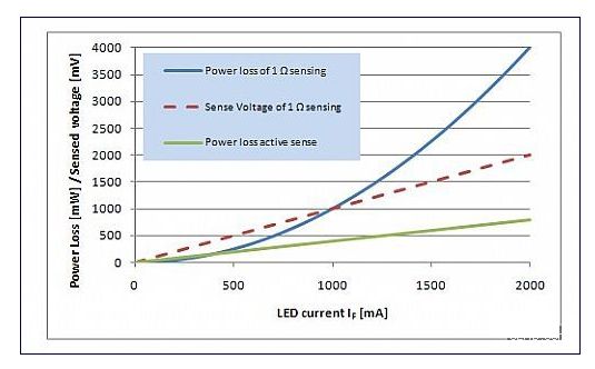 因此,更好的解決方案是一個集成在 LED 驅(qū)動器中的有源電流阱或者電流源,如圖 3 所示。我們可使用一種壓降和由此產(chǎn)生的功耗都得到降低的方法對內(nèi)部電流檢測電阻進(jìn)行調(diào)節(jié),具體調(diào)節(jié)情況取決于 LED 電流的大小。如果為低 LED 電流,則壓降可以維持足夠的高以獲得精確的檢測信號。
