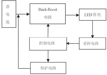 圖2 可知,Buck-Boost 電路將蓄電池電能變換后對LED 陣列供電,采樣電路對流過LED 的電流采樣,將信號傳到控制電路。控制電路分析采樣信息,調(diào)節(jié)Buck-Boost 電路中開關(guān)管的占空比,保證通過LED 電流恒定;當(dāng)電路出現(xiàn)異常時,通過控制保護電路切斷電源,保證LED 不受損害。一般情況下,LED 驅(qū)動電路必須滿足下列要求: