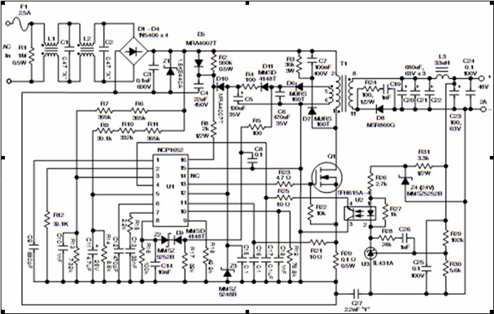 圖1 基于NCP1652A的單段轉(zhuǎn)換器的完整原理圖[page]