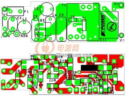 變壓器的次級(jí)由D5整流,由C11濾波。選用肖特基勢(shì)壘二極管來(lái)提高效率。由于C11在A(yíng)C過(guò)零點(diǎn)期間提供能量存儲(chǔ),因此它的值決定了線(xiàn)電壓頻率輸出紋波的幅值(因采用全波整流而為2 x fL )。因此可根據(jù)所需的輸出紋波來(lái)調(diào)整該值。對(duì)于所顯示的680 微F值,輸出紋波為正負(fù)IO的50%。電阻R17和C10用來(lái)衰減高頻振蕩,改善傳導(dǎo)及輻射EMI。