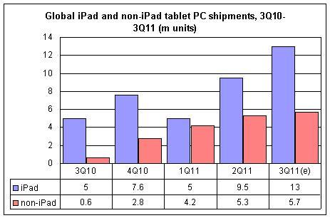 - 蘋果iPad第三季度出貨量?jī)H為1300萬(wàn)部